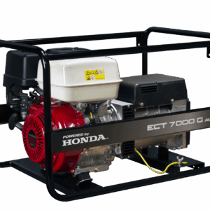 Elektrocentrála ECT 7000G: model velké, třífázové elektrocentrály s regulací výstupu indukčním trafem. Výkonný a vysoce odolný alternátor pohání spolehlivý profesionální motor řady GX s dlouhou životností a to vše ukotveno v pevném a odolném ocelovém rámu.
