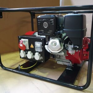 Tato robustní, benzínová elektrocentrála střídavého napětí je svým výkonem určena převážně "profíkům" pro napájení spotřebičů typu osvětlení, ručního elektronářadí, elektromotorů, menších svařovacích agregátů nebo i přístrojů s citlivou elektronikou. Svými rozměry se hodí do pojízdných autodílen, opravárenských vozů pro práci v terénu nebo na staveniště při zakládání staveb a podobně nebo i jako záložní zdroj pro napájení kanceláře nebo domácnosti vybavené elektronikou. Celá soustava je uložena na pružných silentblocích ve vyztuženém rámu, svařeném z ocelových trubek o průměru 25 mm. Ten zajišťuje mimořádnou ochranu soustavy proti případnému poškození a zároveň slouží jako transportní madlo pro snadnou manipulaci. Vzhledem ke své hmotnosti je možné elektrocentrálu opatřit transportním kolovým podvozkem nebo jeřábovým závěsem. Proto, aby alternátor produkoval napětí 230V / 50Hz, je motor opatřen automatickým, mechanickým regulátorem otáček tak, aby při jakémkoliv odběru proudy byly otáčky motoru konstantní ve výši 3000 ot./min. Ovládání elektrocentrály je velice snadné a jednoduché a veškeré ovládací prvky jsou přehledně uspořádány na ovládacím panelu. Elektrocentrála je opatřena zásuvkami 1x CEE (32A 230V), 1x CEE (16A 230V) a 1x Schuko (16A 230V). Stačí natankovat, elektrocentrálu postavit na vodorovnou plochu, zkontrolovat olejovou náplň motoru, nastartovat zatažením za rukojeť ručního startéru, počkat pár vteřin na ustálení chodu motoru a do příslušné zásuvky připojit napájený spotřebič. Elektrocentrála splňuje veškeré nároky na elektrickou bezpečnost a je opatřena ochrannými prvky jako je ochrana motoru proti úniku oleje nebo alternátoru proti přetížení. Robustní a pevná konstrukce rámu se nekroutí a společně s částečným odhlučněním agregátu spolehlivě tlumí působení vibrací od motoru na podklad. Celkovou hlučnost soustrojí snižuje rozměrnější a účinnější tlumič výfuku. Údržba elektrocentrály je zcela nenáročná a spočívá v základní údržbě benzínového motoru.