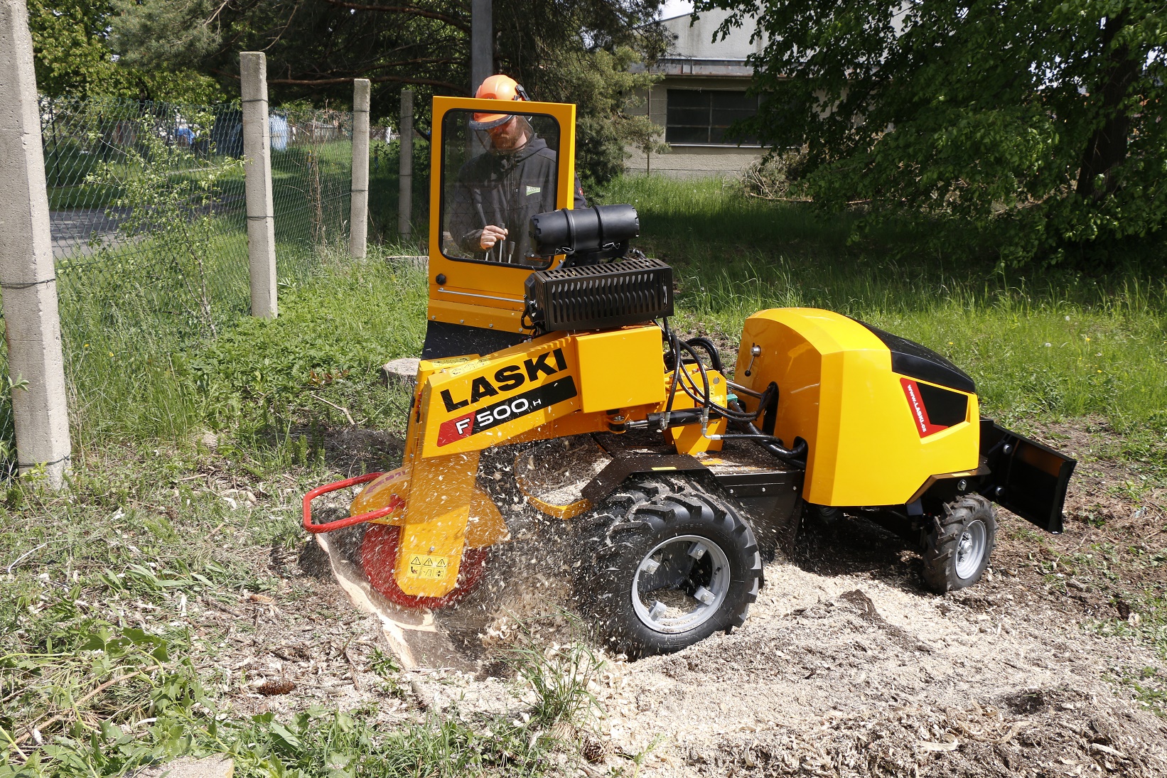 Fréza F 500 je určena k frézování dřevěných pařezů, tj. k odfrézování nadzemní a podzemní části. Maximální průměr pařezu je bez omezení. Hydraulické ovládání výrazně usnadňuje pojezd i práci se strojem. Pracovník je ušetřen veškeré fyzické námaze. Ochranný štít umožňuje kontrolu frézování z bezprostřední blízkosti s maximální bezpečností. Stroj lze vybavit dvoumontáží předních kol pro různý terén a rozdílné pracovní prostředí. Minimální šířka 890 mm umožňuje průjezd frézy i stísněným prostorem.