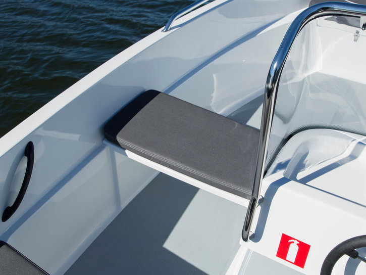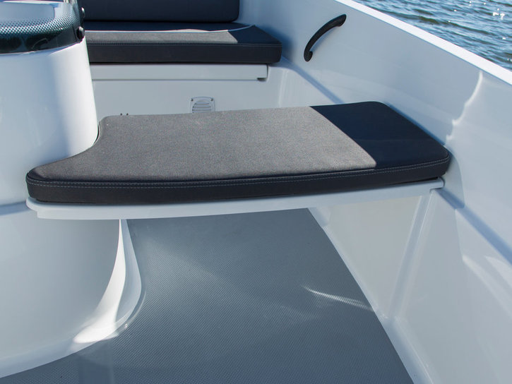 Středová sedačka se montuje mezi řídící konzoli a levou stěnu paluby plavidla. Sedačku lze opatřit polstrováním.