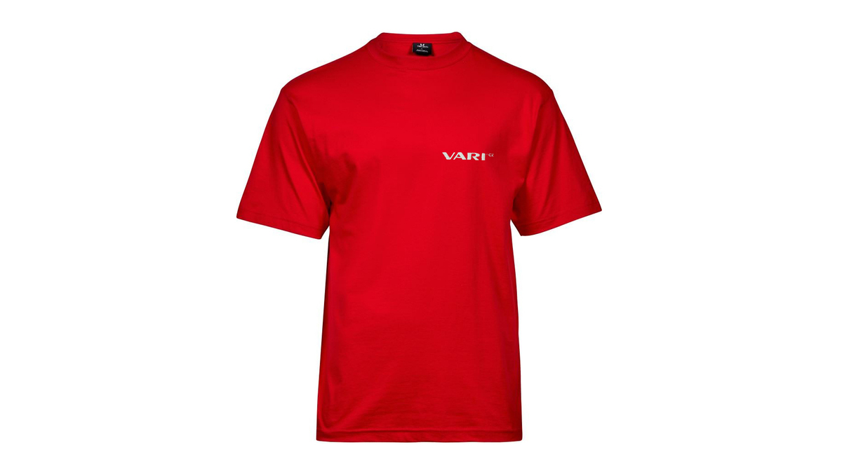 Pánské tričko ze stoprocentní bavlny s kulatým výstřihem má logo VARI.cz na prsu a #myjsmeVARI vzadu za krkem.